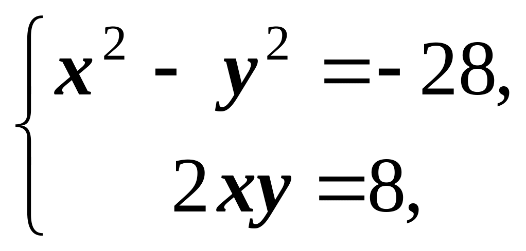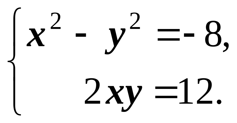 Возведём обе части (2.5.3) в квадрат: a+bi=(x2y2)+2xyi. Теперь, приравняв в обеих частях действительные и мнимые части, приходим к системе