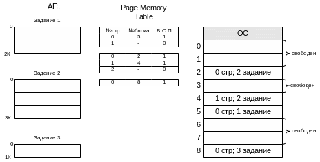 – Задание размещается в памяти целиком, хотя не все страницы задания требуются в памяти одновременно;