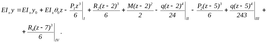 5. Универсальные уравнения углов поворота поперечных сечений и прогибов с учётом найденных начальных параметров и значений нагрузки балки примут вид: