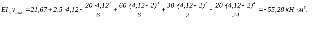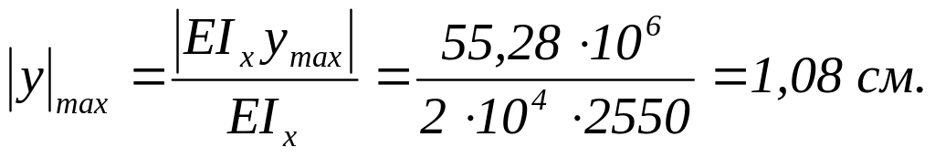 Здесь |EIxymax|=55,28 кН·м3=55,28·106 кН·см3; Е=2·105 =2·104 кН/см2.