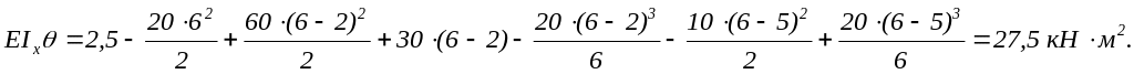 получим: EIxθ0=2,5 кН∙м2; EIxy0= 21,667 кН∙м3.