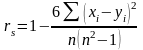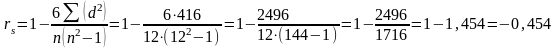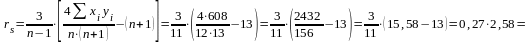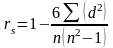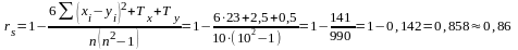 Підставляючи потрібні значення в формулу, розраховуємо емпіричне значення rs.