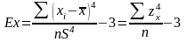 Іншою властивістю одновершинних розподілів є ступінь зосередженості елементів сукупності навколо центра розподілу. Цю властивість називають ексцесом розподілу. Ексцес Ex характеризує відносну опуклість або згладженість розподілу вибірки порівняно з нормальним розподілом. Позитивний ексцес позначає відносно загострений розподіл, негативний – відносно згладжений. Причинами ексцесу можуть бути більша або менша ступінь тяжіння змінних до центральної тенденції, неоднорідність вибірки, накладення один на одного декількох розподілів з однаковою модою та різною дисперсією і т. д. Вирахування показнику ексцесу за формулою: