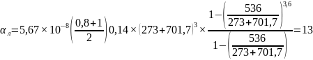 Коефіцієнт тепловіддачі випромінюванням, Вт/(м2∙К):