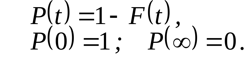 Исторически сложилось так, что законом надежности объекта назвали закон безотказности. Этот закон P(t) определяет вероятность безотказной работы в течение заданной наработки t. Если известен закон распределения продолжительности работы невосстанавливаемого элемента в виде функции распределения F(t), то вероятность работы без отказа в течение времени t