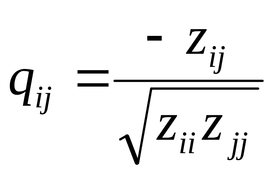 де zij – елемент оберненої матриці Z, що міститься в i-ому рядку і в j- ому стовпчику,