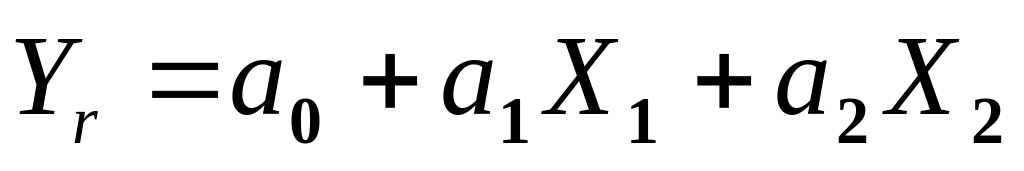 Допустимо, що між показником Y і факторами Х1, Х2 існує лінійна залежність: