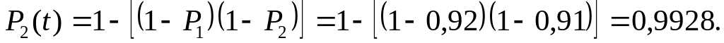 Устойчивость системы оперативной связи, состоящей из двух каналов связи (основного и резервного), оценивается следующей вероятностью безотказной работы при данных P1 = 0,92, P2 = 0,91:
