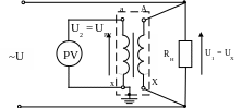 Первинну обмотку затискачами «А» та «Х» підключають паралельно до споживача RН, спад напруги на якому необхідно виміряти, а до затискачів «а» та «х» вторинної обмотки приєднують прилади. |