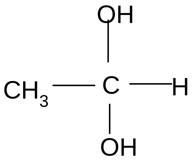 Полученный двухатомный спирт (диол) неустойчив. Прочность связывания воды, т.е. степень гидратации, зависит от строения и характера радикала в различных альдегидах. Например, трихлоруксусный альдегид (хлораль) хорошо гидратируется благодаря присутствию в радикале трех атомов хлора.
