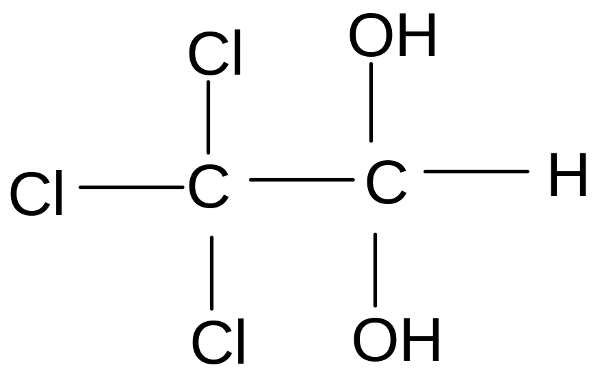 Хлоралгидрат – один из немногочисленных примеров прочных гидратов альдегидов. Хлоралгидрат – лекарственный препарат снотворного и противосудорожного действия. Галогены усиливают снотворное действие, а гидратация уменьшает токсичность.
