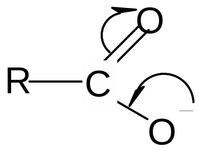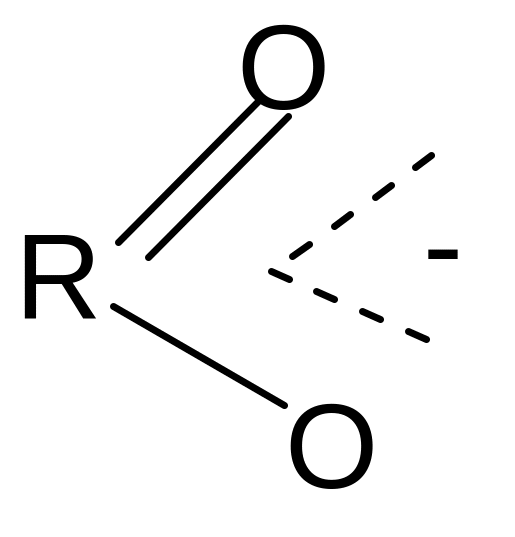 В карбоксилат-анионе заряд делокализуется по сопряженной системе, т. е. равномерно распределяется между двумя атомами кислорода карбоксилат–аниона, что придает ему стабильность: