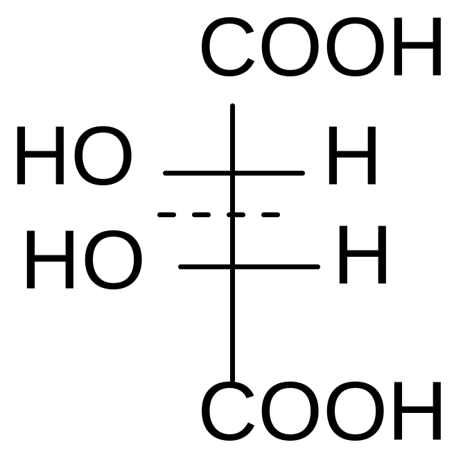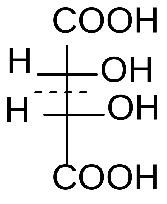 Рацемат– это смесь равных количеств энантиомеров, не обладающая оптической активностью, вследствие компенсации вращения. Таким образом, у винной кислоты существуют 4 формы: 2 энантиомера (D- и L-), 1 мезо-форма и 1 рацемическая смесь. Рацемические смеси получаются синтетическим путем.