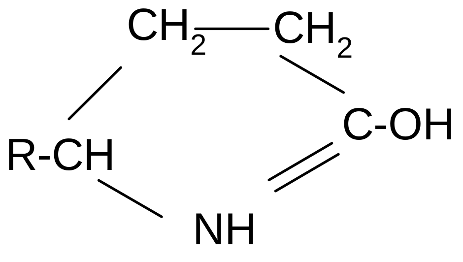Все протеиногенные -аминокислоты – за исключением пролина – содержат первичную аминогруппу.