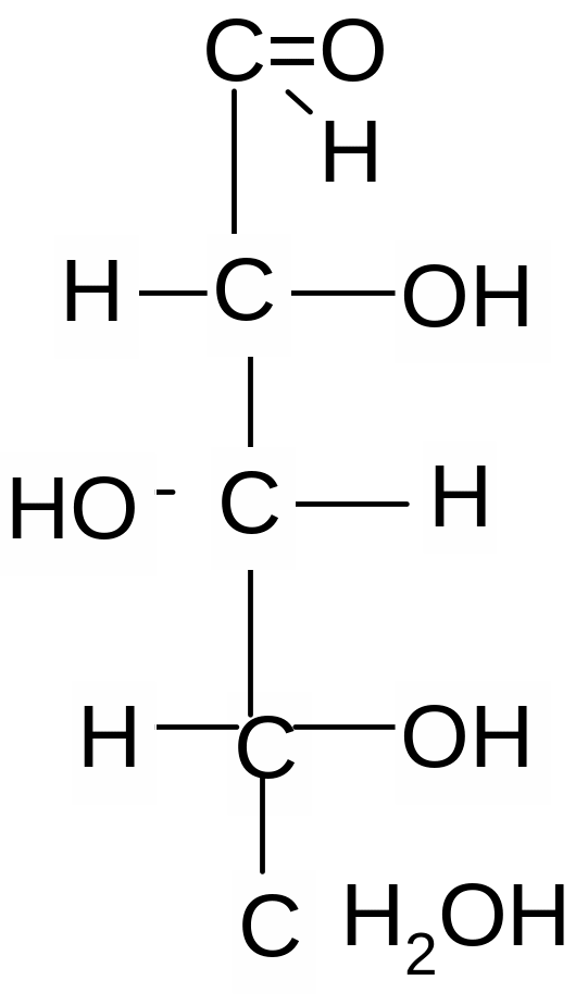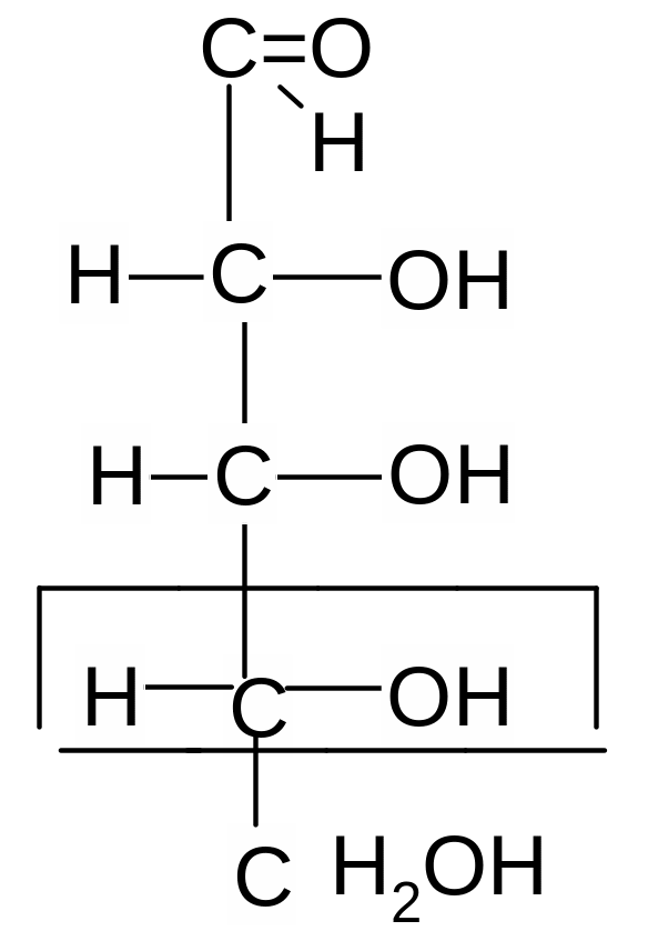 Принадлежность моносахарида к L- или D- ряду определяется по конфигурации его нижнего хирального атома углерода, конфигурация которого остается без изменения при переходе от эталона конфигурации - глицеринового альдегида с помощью оксинитрильного синтеза Килиани–Фишера.