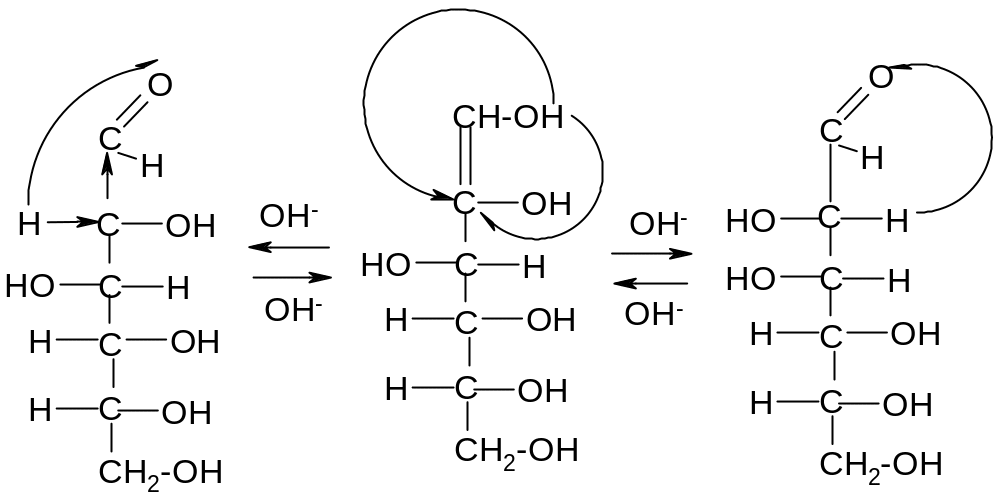 Стереоизомеры, отличающиеся конфигурацией одного хирального центра, называются эпимерами, а процесс их взаимного превращения друг в друга в щелочной среде – эпимеризацией.