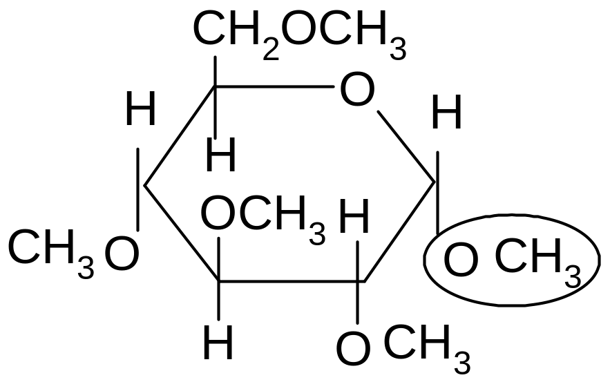 Если спирты способны алкилировать только полуацетальный или полукетальный гидроксил, то более сильные алкилирующие агенты: диметилсульфат или йодистый метил в щелочной среде алкилируют все спиртовые группы углеводов с образованием простых эфиров.