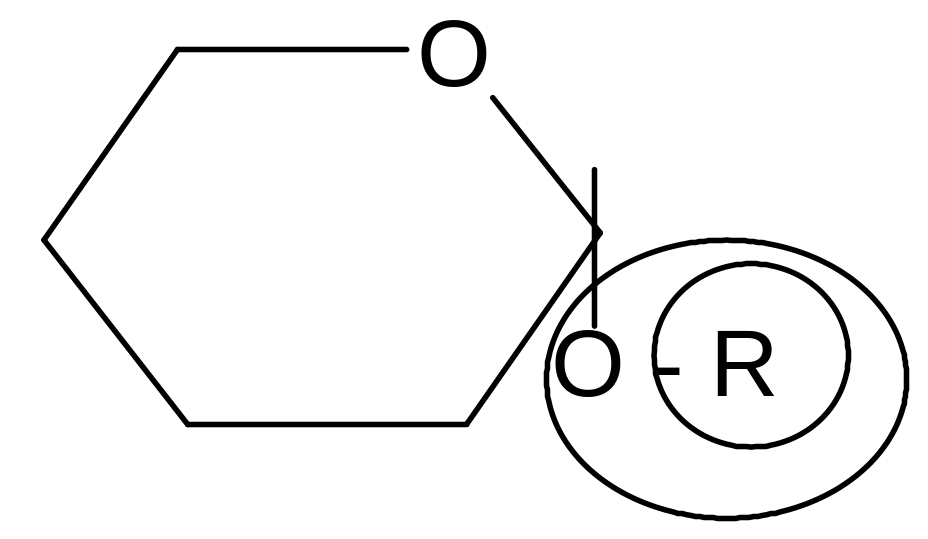 1.1. Как уже отмечалось ранее, полуацетали взаимодействуют со спиртами в безводной среде в присутствии кислотных катализаторов с образованием ацеталей. Углеводы в этих условиях также образуют ацетали, называемые О-гликозидами: