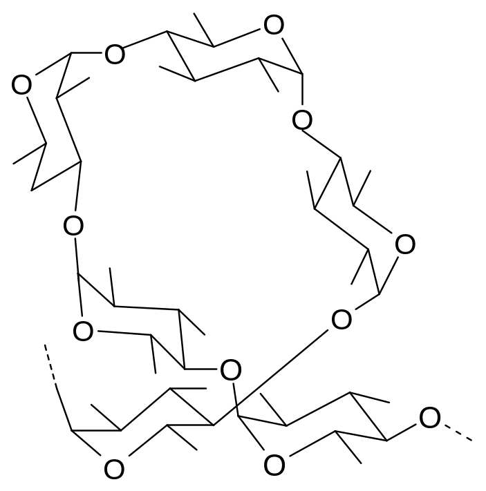 Такая вторичная структура придает целлюлозе волокнистость, большую механическую прочность и гидрофобность (нерастворимость в воде). Она определяет и биологическую функцию этого биополимера. Целлюлоза является основным компонентом и опорным материалом клеточных стенок растений.