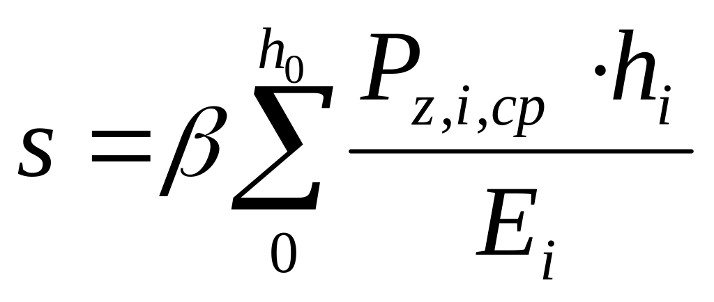 У межах стислової товщі, що стискається, обчислюють осідання основи за формулою: