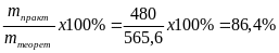 mтеорет.- масса вещества, рассчитанная по уравнению химической реакции.
