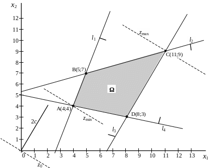Вычислим значение целевой функции zmin = z (Х*) = 4 + 24 = 12.