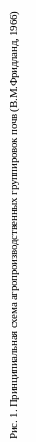 Наибольшее распространение получили общие группировки, построенные на свойствах почв, определяющих их качества как среды для культурных растений. Такие группировки составлены различными способами, с использованием разной терминологии как для отдельных хозяйств, так и регионов, республик. Большей частью они соответствуют общим принципам составления, предложенным В.М.Фридландом (1966) и представленным на рис.1.