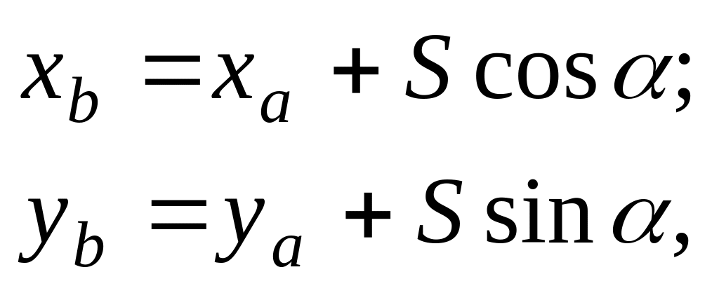 Приклад 7. Дано координати точки А:ха= 6 065 340,00 м, , уа. = 4 309 180,00м, дирекційний кут лінії АВ, = 30347,6 і відстань = 246,16 м. Обчислити координати точки В. Обчислення приведені нижче в таблиці: