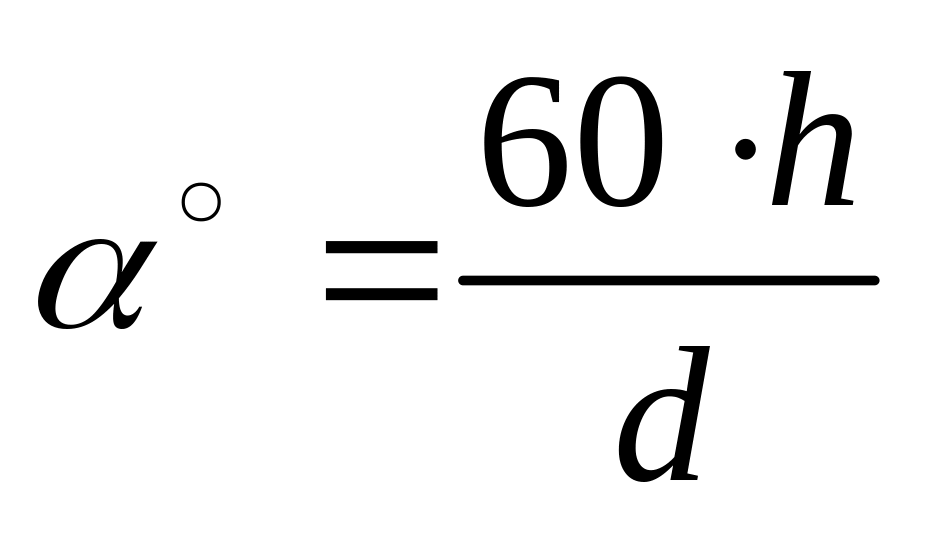 Приклад. Крутизна схилу для закладання в 1 см на карті масштабу 1:50 000 при висоті січення 10 м дорівнює 112. Тоді при закладенні у 1/2 см крутизна в 2 раз більше, тобто 224; при закладанні в 3 см крутизна в 3 рази менша, тобто 024'.