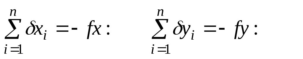 де хі , yі – поправки в прирости координат для і-тої лінії,