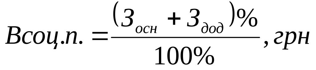 Нарахування на зарплату, соціальні потреби складає - % від суми основної та додаткової заробітної плати