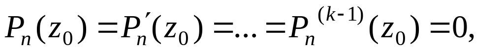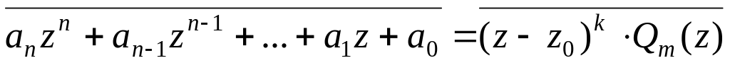 Доказательство. Если z0 – корень кратности k многочлена , то многочлен можно представить в виде , где .