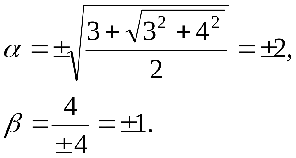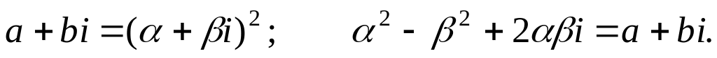 Приравнивая действительные и мнимые части, а также, учитывая, что модуль числа равен квадрату модуля его корня, получаем систему
