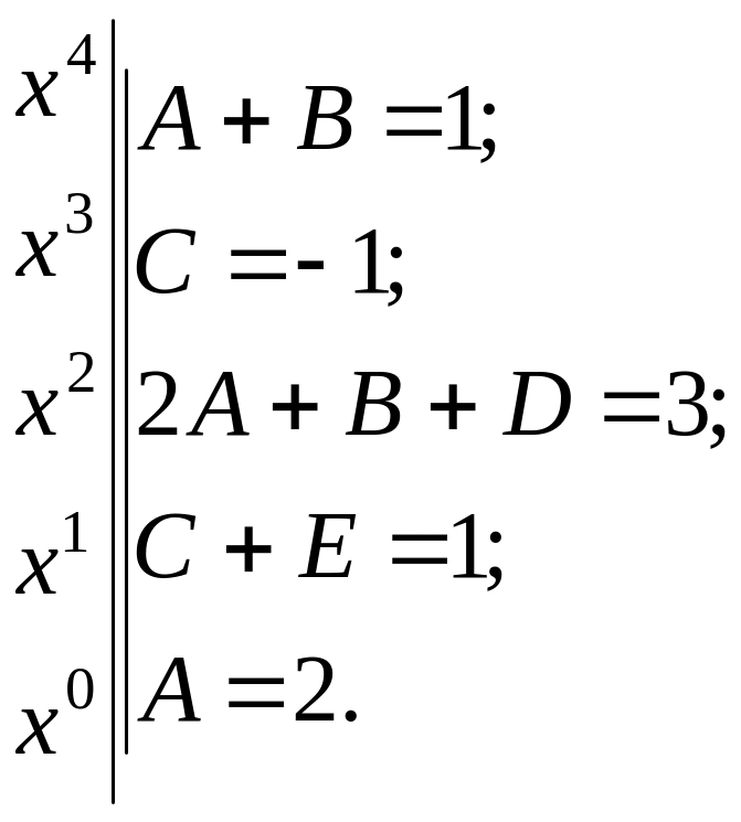 Приравнивая коэффициенты при соответствующих степенях в правой и левой частях этого равенства, получаем систему