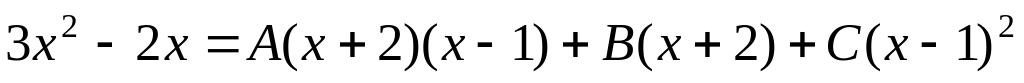 Найдем неопределённые коэффициенты A, B, C подстановкой частных значений переменной.