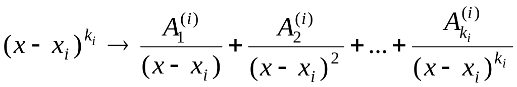 В общем случае разложение правильной дроби на простейшие имеет вид