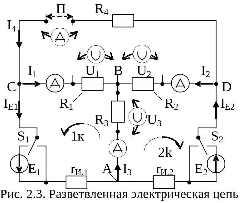 nК = nВ – (nУ – 1), nК = 6 – (4 – 1) = 3; (здесь ключ S1 замкнут) (2.4)