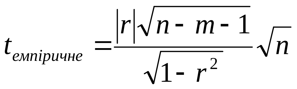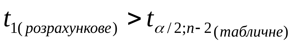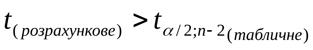 Якщо , то коефіцієнт кореляції генеральної сукупності відмінний від нуля, а кореляційний зв'язок є значним з надійністю 0,95.