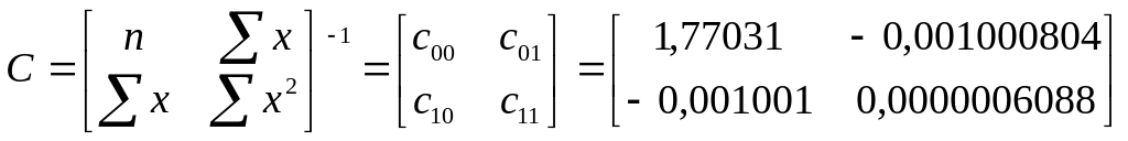Ковариційно-дисперсійна матриця коефіцієнтів рівняння регресії: