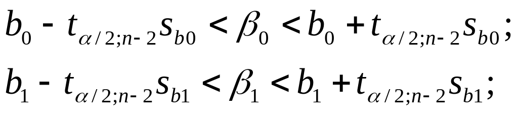 Інтервальні статистичні оцінки для теоретичних коефіцієнтів b0 і b1.