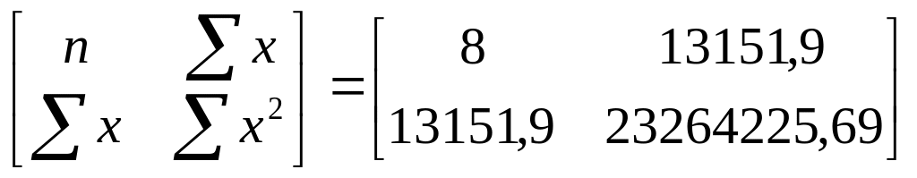 Матриця коефіцієнтів системи нормальних рівнянь: