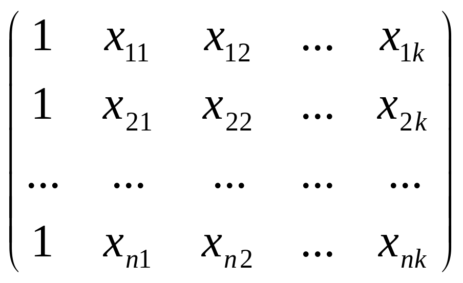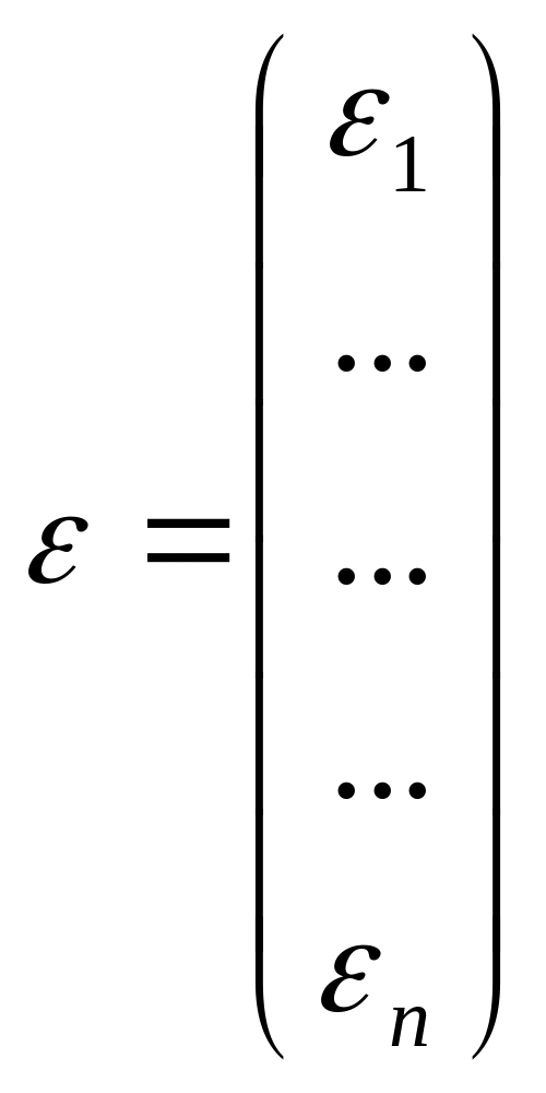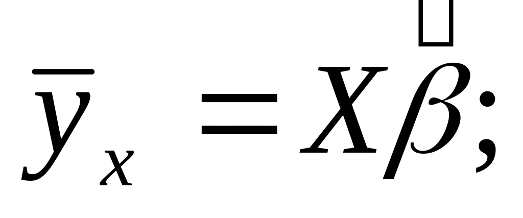 де Y – n - мірний вектор – стовпець спостережень залежної змінної, - (k+1)-мірний стовпець параметрів, - n – мірний випадковий вектор, складові якого є випадковими похибками.