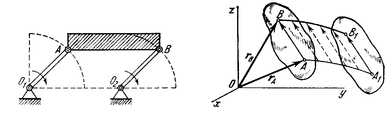 Problems of kinematics of rigid bodies are basically of two types: (1) definition of the motion and analysis of the kinematics characteristics of the motion of a body as a whole; (2) analysis of the motion of every point of the body in particular. We shall begin with the consideration of the motion of translation of a rigid body.