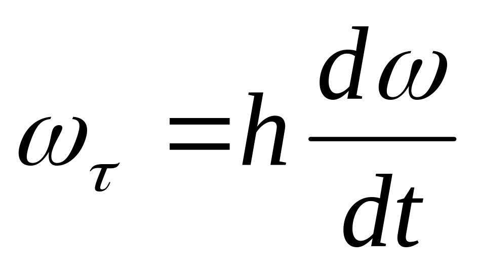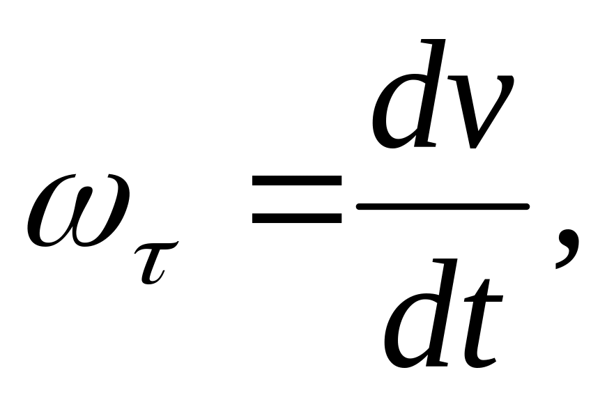 The tangential acceleration wt, is tangent to the path (in the direction of the rotation if it is accelerated and in the reverse direction if it is retarded); the normal acceleration wn is always directed along the radius h towards the axis of rotation (Fig. 13a).