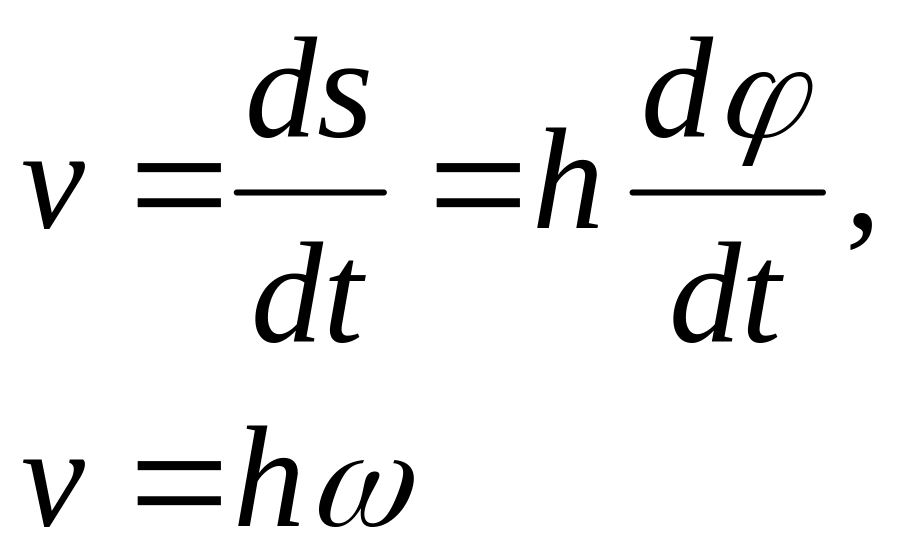 Consider a point M of a rigid body at a distance h from the axis of rotation Az (Fig. 11). When the body rotates, point M describes a circle of radius h in a plane perpendicular to the axis of rotation with its centre C on that axis. If in time dt the body makes an infinitesimal displacement through an angle d φ, point M will have made a very small displacement ds = h df along its path. The velocity of the point is the ratio of ds to dt, i.e.,