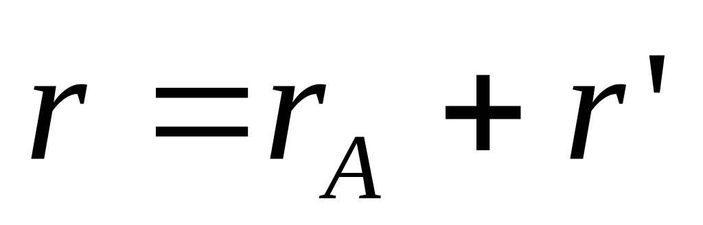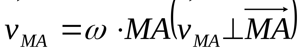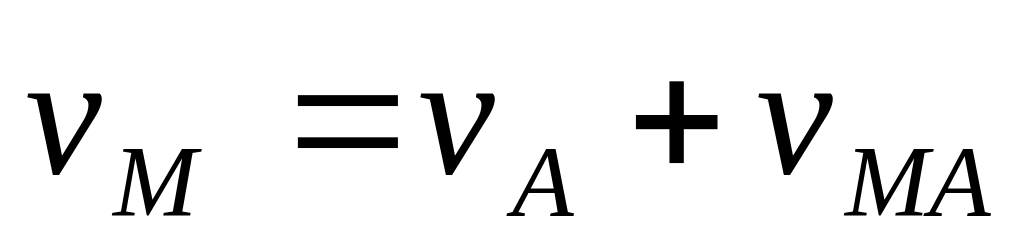 where ω is the angular velocity of the rotation of the body. Thus, the velocity of any point M of a body is the geometrical sum of the velocity of any other point A taken as the pole and the velocity of rotation of point M about the pole.