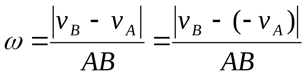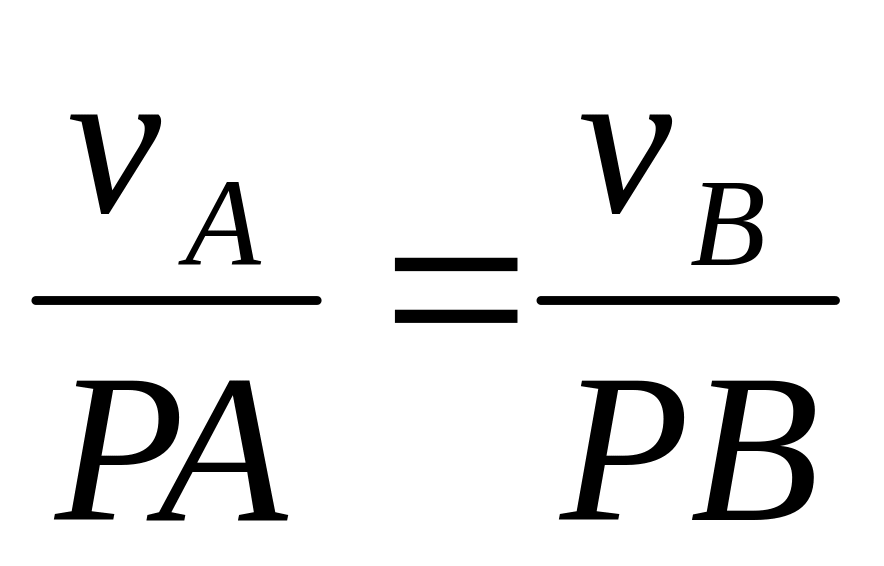 (c) If the velocities of points A and B are parallel and AB is perpendicular to , the instantaneous centre of zero velocity P can be located by the construction shown in Fig. 24 b. The validity of this construction follows from the proportion (54). In this case, unlike the previous ones, we have to know the magnitudes of velocities and to locate the instantaneous centre of zero velocity P.