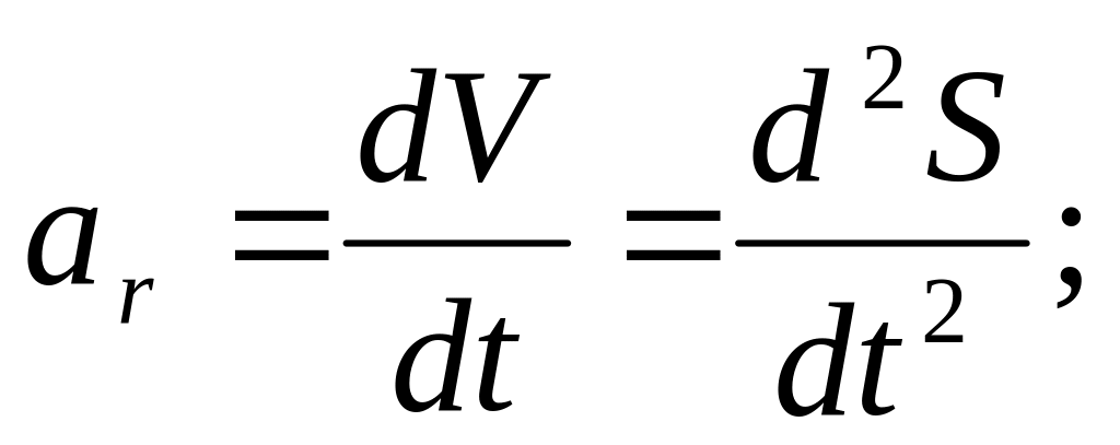 We have thus proved that the projection of the acceleration of a particle on the tangent to the path is equal to the first derivative of the numerical value of the velocity, or the second derivative of the displacement S, with respect to time; the projection of the acceleration on the principal normal is equal to the second power of the velocity divided by the radius of curvature of the path at the given point of the curve, the projection of the acceleration on the binormal is zero (ab=0).