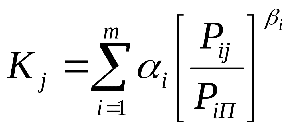 При определении i, должно выполняться условие i = 1; i = 1 — если увеличение значения параметра Рij способствует росту конкурентоспособности продукции (например, надежность изделия, его производительность и др.); i = -1 — если увеличение значения параметра Рij приводит к снижению конкурентоспособности продукции (например, цена).