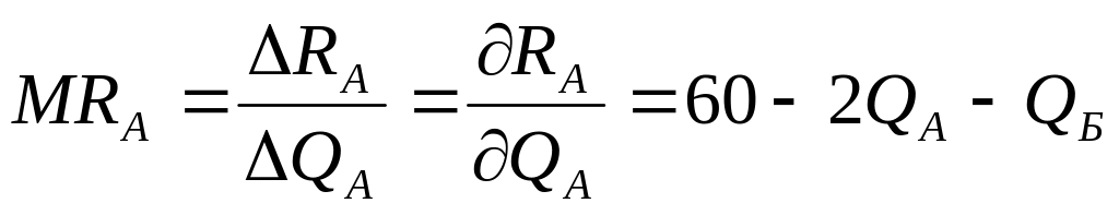 В этом случае кривая реакции фирмы А будет определяться следующим образом. Для максимизации прибыли предельные издержки фирмы должны быть равны предельному доходу. При этом общий доход фирмы А будет составлять: